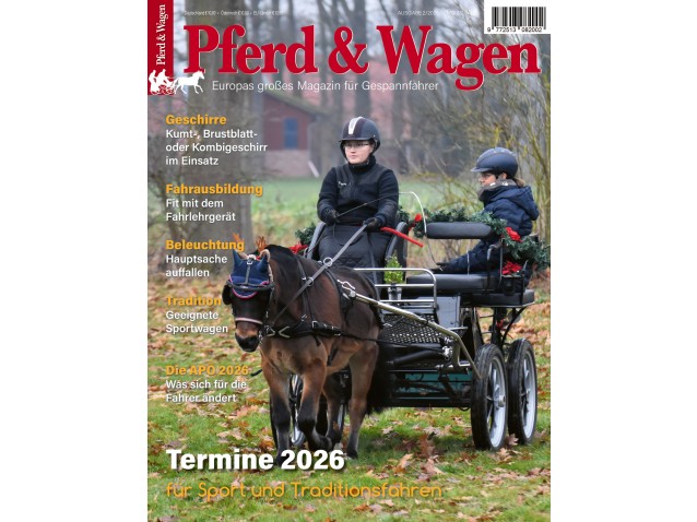 Winterzeit ist Trainingszeit und zwar am Fahrlehrgerät! Erfahren Sie mehr über die Geschichte bis hin zu modernen Fahrlehrgeräten. Wie muss ein Geschirr sitzen, damit ein Pferd richtig ziehen kann und welche Unterschiede gibt es zwischen Kumt, Brustblatt oder Kombigeschirr. Sehen und gesehen werden: die richtige Beleuchtung des Gespanns ist entscheident. Schon zur Hochzeit der Kutschen waren "Sportwagen" beliebt. Andres Furger beschreibt ihre Entwicklung und die verschiedenen Typen für das Traditionsfahren. Außerdem finden Sie in der Terminübersicht alle Turniertermine, WBO-Wettbewerbe und im Traditionsfahrkalender die bereits feststehenden Traditionsfahrveranstaltungen im Inland und im angrenzenden Ausland für 2026.